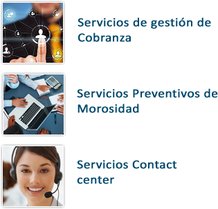 • Contamos con la capacidad para desarrollar una amplia gama de servicios de cobranza, gracias a nuestros servicios de call center, colectores de pago, gestores en terreno, y puntos de recaudo.